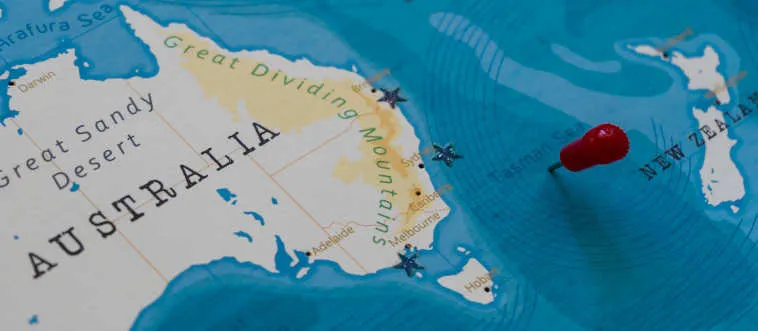 Which sea is located between Australia and New Zealand?