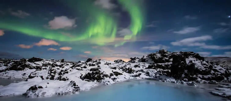 Which country is known for the Northern Lights and geothermal spas?